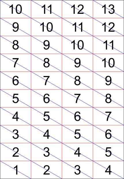 Si insertar o sustituir los números (matriz de 4 x 10) con estas líneas rectas regulares, usted obtendrá un diagrama plegable de un tornillo trigonal aproximado.