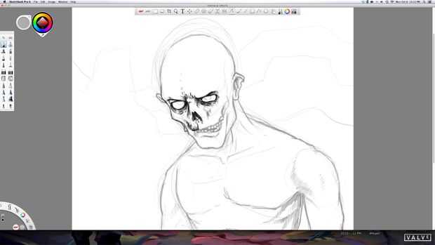 En esta etapa hice una nueva capa para poner hacia fuera los detalles más refinados. Siempre empiezo en la cara. Los ojos tienden a ir hacia la cara así que si vas a vender el terror zombie mirar ir todo esto. Por qué le di una mueca que realmente no sé.