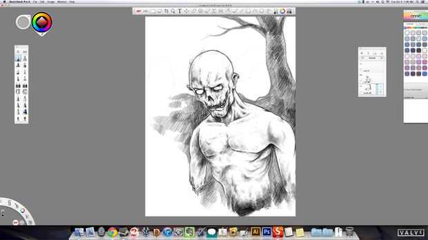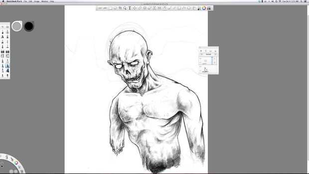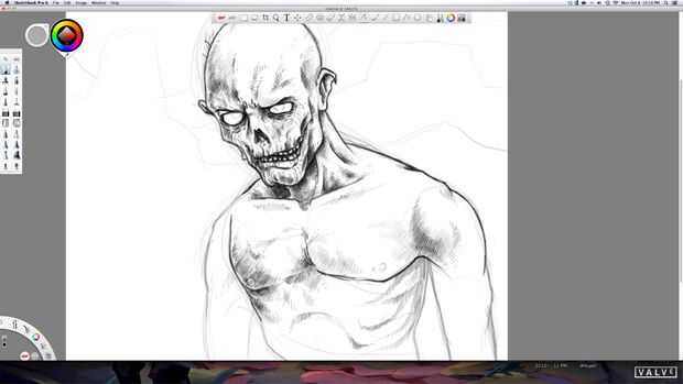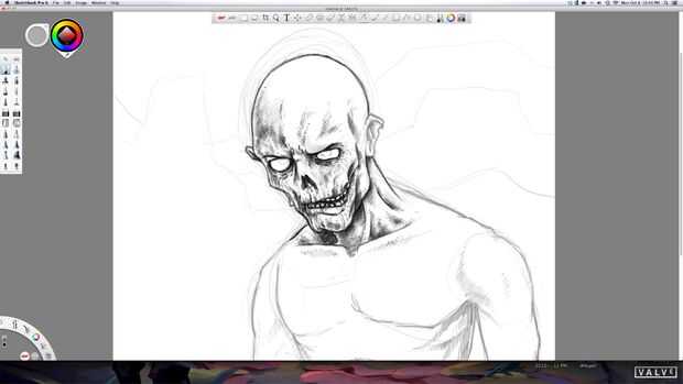 Ahora empezamos en el sombreado básico. Lo hago con una serie si las líneas en diferentes tonos de gris. Esto pone de manifiesto la idea de que su carne cariado. Hace que sea sucio como sólo él había arrastrado desde un cementerio.