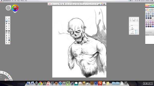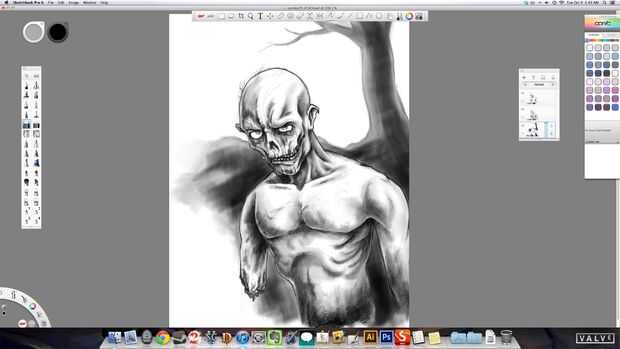 Ahora que tienes el cuerpo establecido decidí agregar en algún tipo de elemento de fondo base. O garabateadas, sí garabateadas por un árbol básico solo para que no fuera tan aburrido. Esto sugiere planificación previamente hacia fuera y hacerlo en una capa independiente en caso de que desee retocarlo. Si haces esto en una etapa posterior que tendría que asegurarse de que no interfiere con el tema. Capas separadas le ahorrará un montón de frustración si tienes que modificarlo.