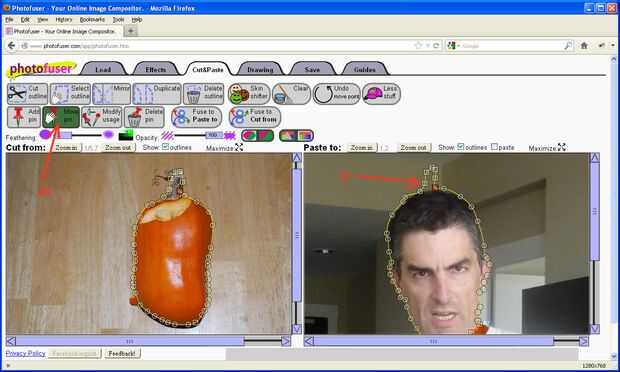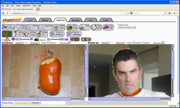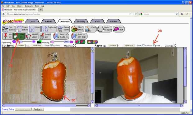 30. mover pasadores en el panel de "Corte de" hacia el interior de la calabaza como sea necesario para eliminar las zonas oscuras de la muestra en la imagen de "Pegar".
