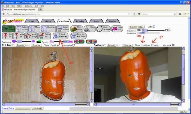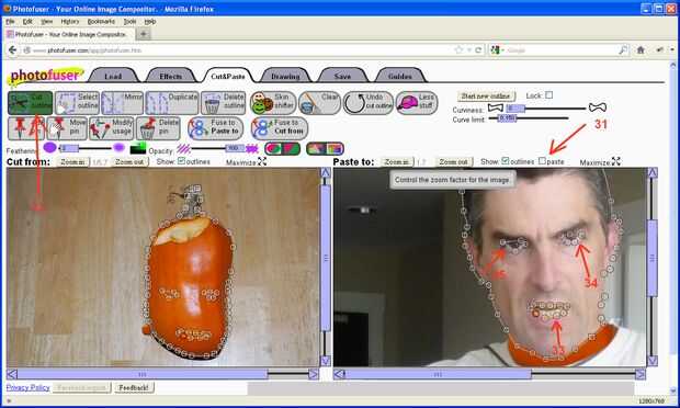 33,34,35. corte contornos alrededor de los ojos y el interior de la boca. Cuando Photofuser detecta un contorno dentro de otro, se trata del contorno interior como un agujero.