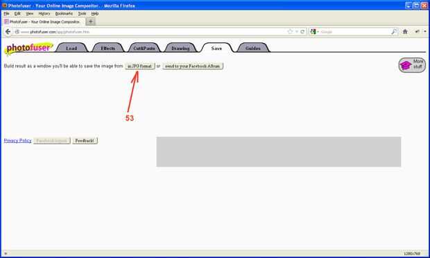 53 paso: haga clic en el botón "Formato JPG". Si su navegador es cualquier cosa excepto cromo, Esto abrirá un cuadro con tu imagen en ella. Si usas Chrome, tendrás un archivo guardar cuadro de diálogo o su imagen se guardará en el directorio de descargas (dependiendo de la configuración de su navegador).