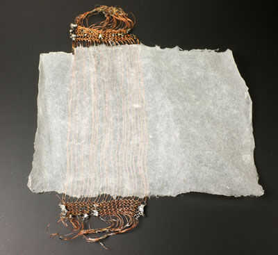 Hileras de alambre de Magneto paralelo, pegado entre dos pedazos de papel, llevan la señal de audio. Los cables se colocan en la sección media del imán.