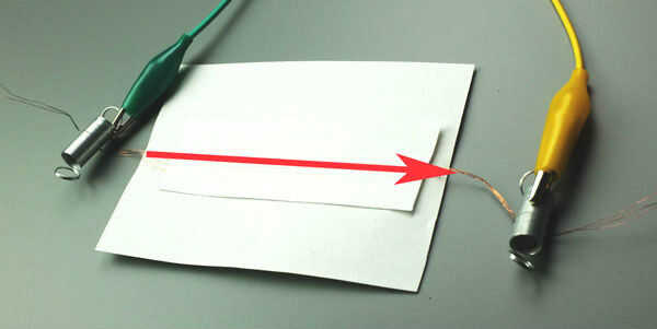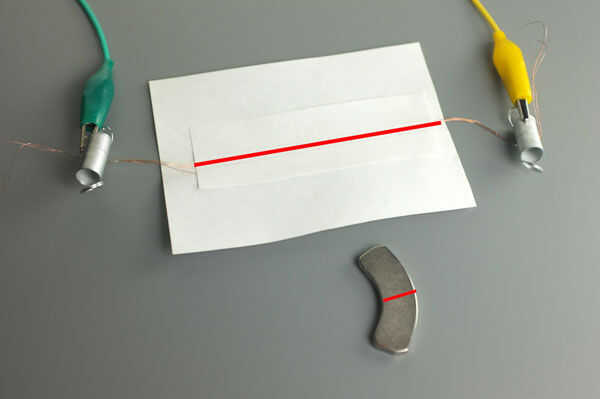 Cuando la línea roja en el papel se apoya sobre la línea roja en el imán, que produce un altavoz claramente audible.