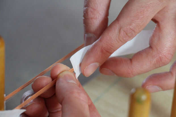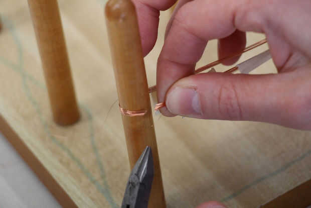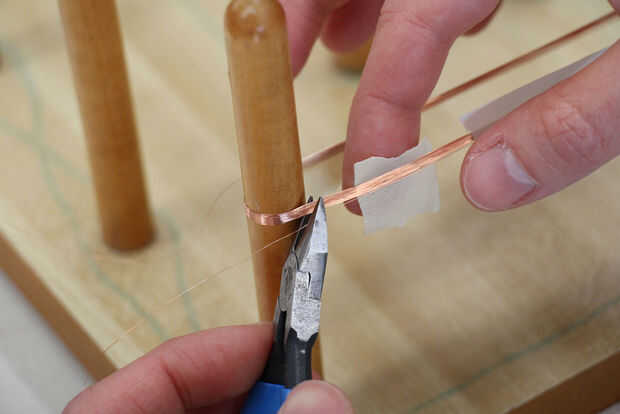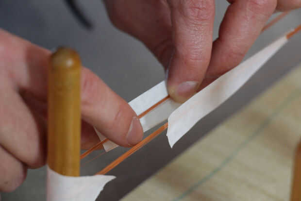 Presione los cables firmemente juntos como añadir cinta tack bajo en un lado. Las filas deben estar alineadas tan ajustadamente como sea posible, sin superponerse entre sí: una sola capa de alambres paralelos.