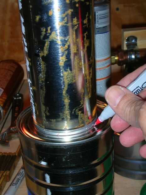 Lugar el cilindro del desplazador en la parte inferior de un café puede - o algunos otros con un diámetro mayor - centrar y marcar alrededor de la base de la cylinder(1).