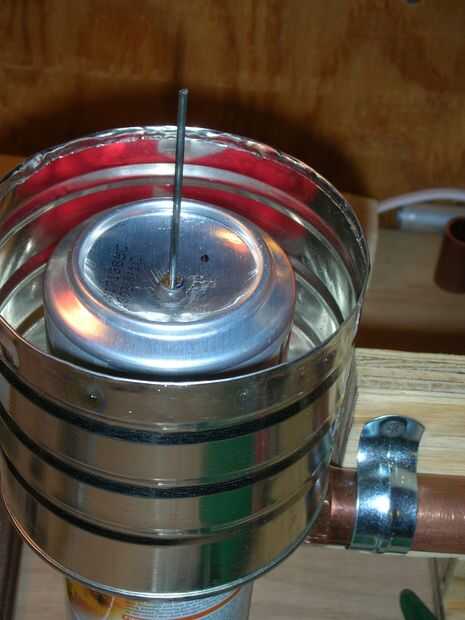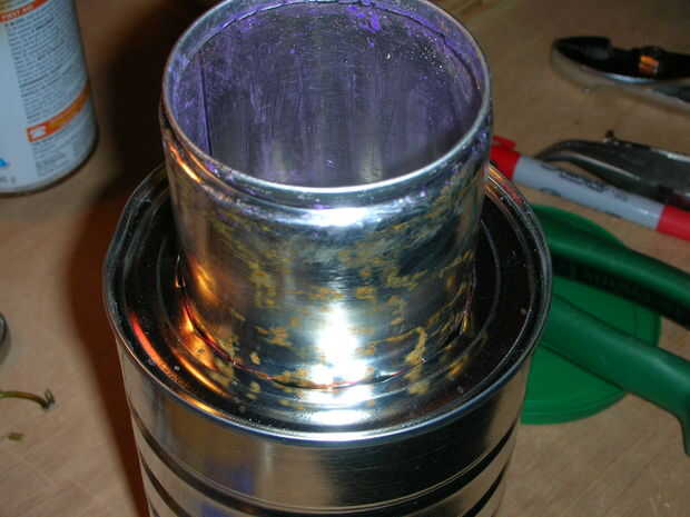Corte una segunda lata de café por la mitad y colocarlo como antes para ir alrededor de la parte inferior del displacer 14-boca por supuesto. No hay necesidad de sellar este poder con la silicona.