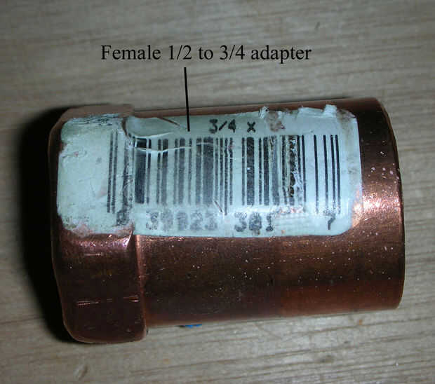 Corte a 3/4 en la sección larga de 3/4 en tubos de cobre y ajuste interior del adaptador (4). Esto permitirá que el tubo de reparación para su acoplamiento con el adaptador más adelante.