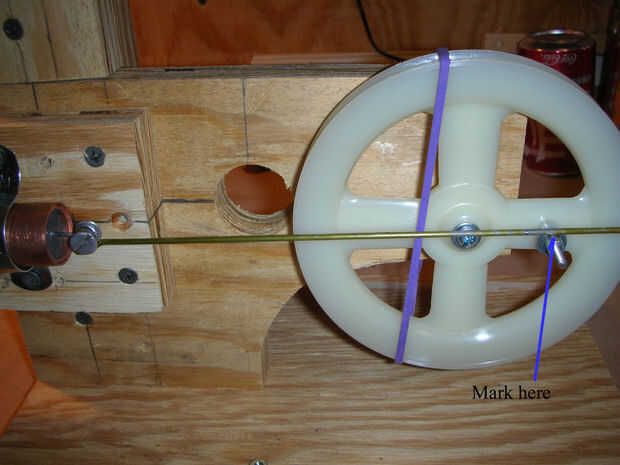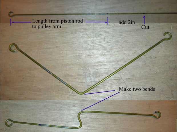 Segurar la extensión hasta la barra del pistón para ver cuánto ajustar estas curvas para alargar o acortar la varilla para que alcance el brazo de la polea. Vuelva a verificar para asegurarse de que las mentiras de extensión horizontal sobre la mesa. Está bien si el brazo es un poco largo - el pistón sólo montaré más profundo dentro del cilindro - pero si es un poco corto, el pistón saldrá más allá del borde del cilindro durante su ciclo.