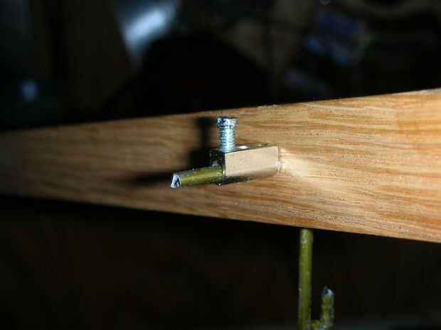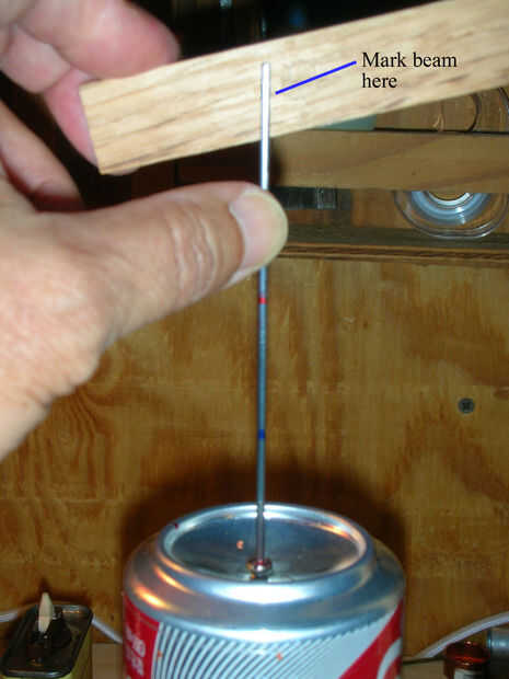 Tire hacia abajo de la viga y tire de la varilla de desplazamiento (3), sostenerlo sobre la viga y marque la viga donde la barra cruza la línea media de la viga. Perfore un agujero a través de la viga en esta marca - agujero debe ser sólo lo suficientemente grande como para que percha alambre girará libremente.