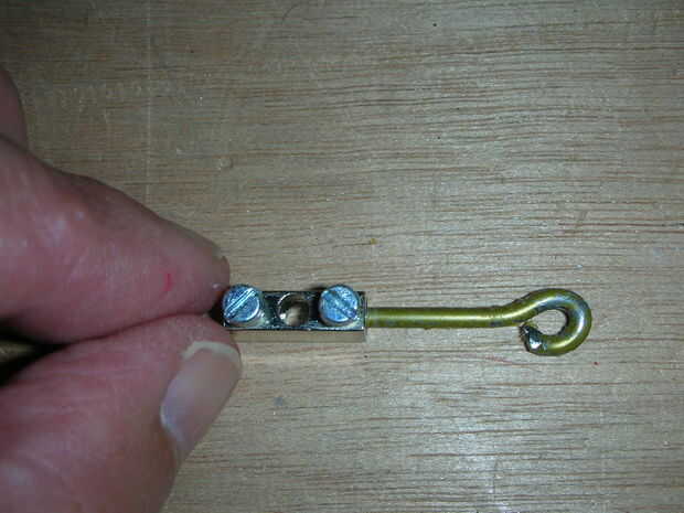 Ponga un bloque terminal grande en el eje de la pieza colocada que solo hecho (4), asegurándose de que el eje sólo se extiende a mitad de camino en el bloque y luego bloquear la pieza con un tornillo. Ahora sujete el bloque a la varilla de desplazamiento utilizando el tornillo de ajuste.