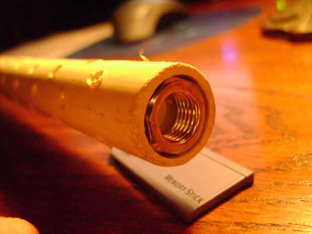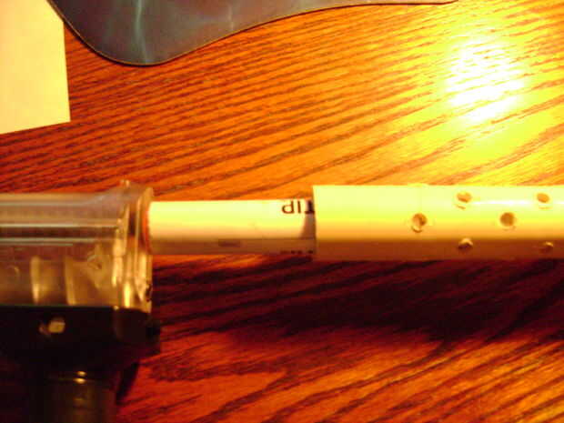 poner una tuerca en el extremo de la P.V.C. como hice para que se vea como si fuera un fino cañón a través de la