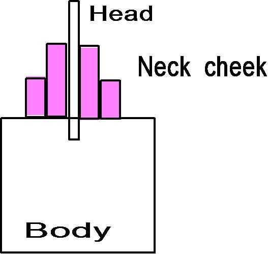 Las mejillas del cuello van a cada lado de la cabeza para formar los músculos del cuello. Nota que esto es una doble capa de espuma.