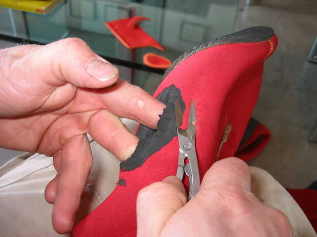 Cortar esa superficie con la capa de tela (si existe) por lo que va estrechando hasta el agujero.