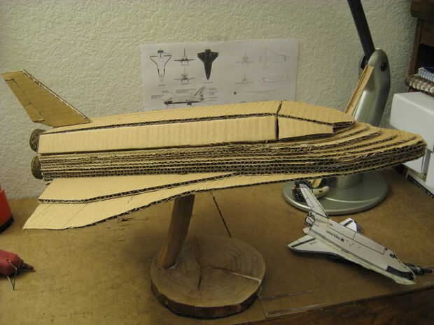 -Hice una maqueta de 1:78 de la NASA lanzadera de espacio completamente de materiales reciclados, utilizando herramientas que son comunes y pueden encontrarse en una casa promedio. Principalmente utilicé cartón y pegamento de Elmer.