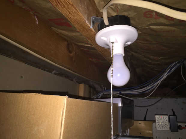 Tengo armarios de almacenamiento de información en mi sótano con una sola bombilla y un interruptor cadena - buena luz justo al lado de él, pero cuando usted consigue en las esquinas o debajo de las escaleras. Ahora que las luces LED están bajando de precio decidí averiguar de una manera a la luz el espacio - tan fácilmente como podía.