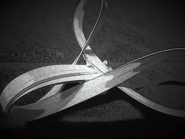 A primera vista, parece elegante y sin fisuras. La curva de la cuchara-como en el lado se abre hacia el centro. Un extremo se extiende como una cinta, girando un poco a lo largo de su longitud. Forma una curva gratuito orientada en un ángulo, una imagen de espejo inclinada. Que se extiende a lo largo, termina donde comienza, a la otra mitad. Dos juntos hacen un casco robusto con las alas del lado, una hoja de trébol.