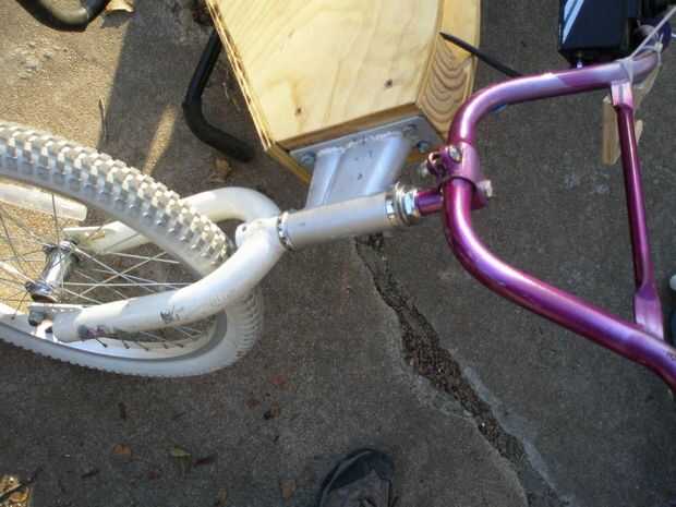 Un triciclo eléctrico con estructura de madera que se inclina (10 / 12 paso)
