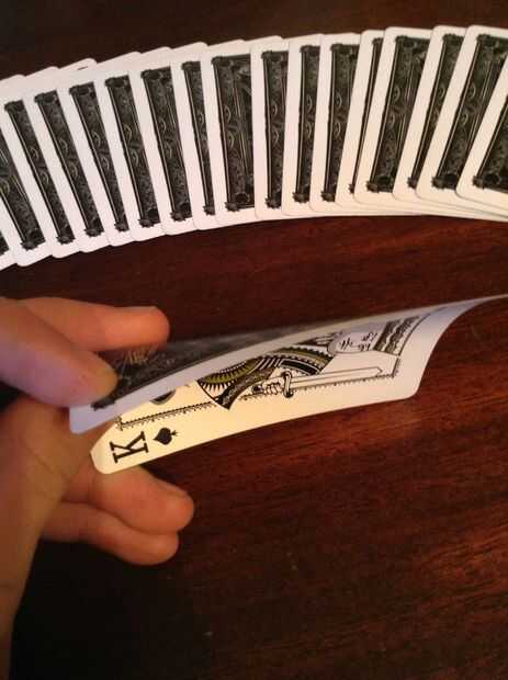 Paso 1: Lo que usted necesita Todo lo que necesita una baraja de cartas y un voluntario.Para prepararte, necesitará mirar la tarjeta inferior y memorizarlo. (puede ser cualquier tarjeta)Paso 2: gota Las primeras cartas de la gota en la parte inferior