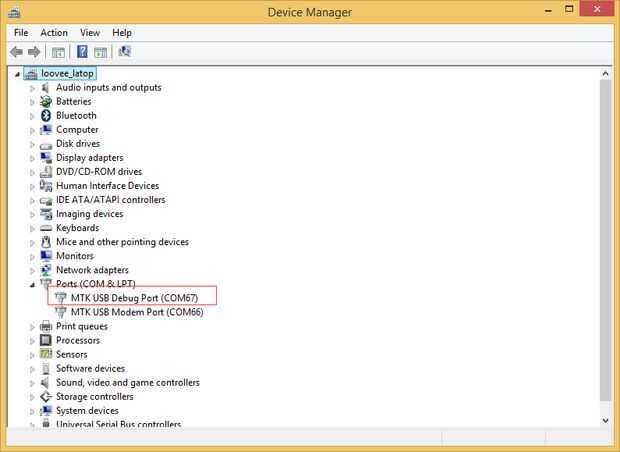 Haga clic en herramienta > puertos y choost el número de puerto de depuración de USB de MTK.