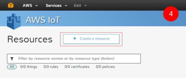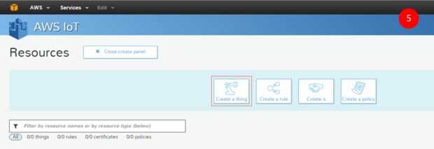 Haga clic en crear un recurso y luego crear una cosa (de la imagen 4 y 5)