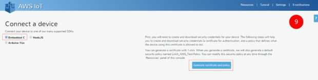 Elegir Embedded C y haga clic en generar certificado y de política. (imagen 9)