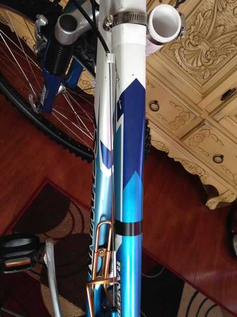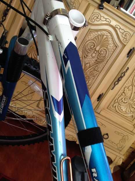 Después de apretar las abrazaderas, debe ser capaz de ver donde ahora será naturalmente rest/hit/make-a-lot-of-noise-bumping marco el u-lock. Obviamente no queremos eso. Lo solucioné esto con velcro. Primero, marcó el punto y envuelto algunos cinta aislante alrededor de él. No es necesario pero me quite el heavy duty podría permitir velcro cuando se trata de tiempo. En segundo lugar, envuelve el lado del lazo (lado suave) de algunos industrial, resistente velcro alrededor del marco de una vez.