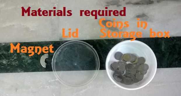 Un uso creativo de imán. Recoger las monedas dispersas o caídos con imán. un experimento con el imán. (1 / 5 paso)