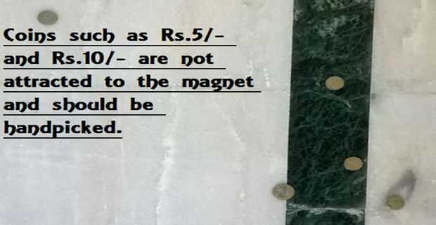 Un uso creativo de imán. Recoger las monedas dispersas o caídos con imán. un experimento con el imán. (5 / 5 paso)
