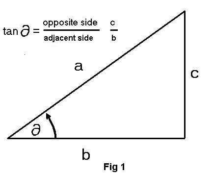 En la sección de trigonometría dice tan theta = lado opuesto / adyacente