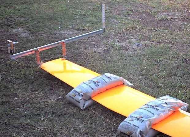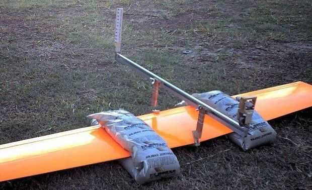 Bolsa de arena del ala, (para evitar que el ala en movimiento) primero cero el láser en la sección de centro. Ahora transferir suavemente el medidor para las puntas del ala sin noquear a la posición cero. Como una cuestión de principio siempre enfrentan el láser en la parte posterior del ala o plano para que cuando el láser Lee por encima de la línea cero indica grados positivos.