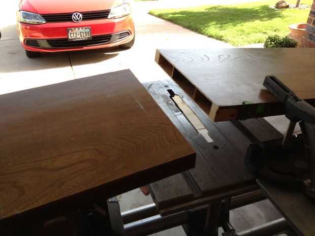 Les tomé casa y comenzó por cortar a la longitud necesaria para los estantes. Luego corté un trozo de madera para encajar en el extremo que había cortado. Simplemente pega la paz de la madera y utiliza algunas abrazaderas para sujetar en su lugar. Después de que el pegamento se ha secado me encontré que las puertas lanzaron el Hanon longitudinalmente. Esto era para quitar los recortes de las bisagras, sólo tuve que recortar aproximadamente un octavo de pulgada. Después de eso corté usado mi router y un 1/4 pulgada redonda sobre pedacito del borde delantero de la puerta sólo para ablandar para arriba.