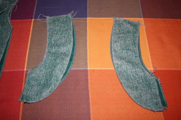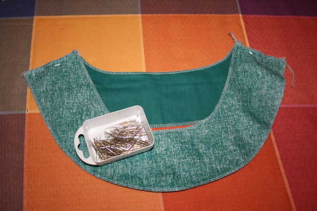 Luego colocar los revestimientos de escote cara a cara en el «frente» y el «nuevo» cosidos juntos y coser.