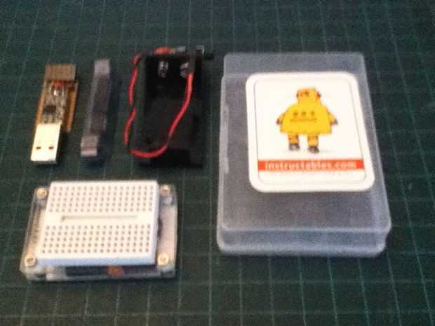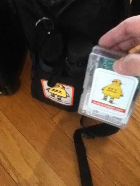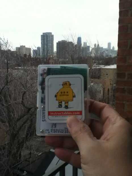 También coser un parche de Robot de Instructables en mi mochila y poner una etiqueta de Robot de Instructables en la parte posterior de la caja del Arduino Kit de Palma.