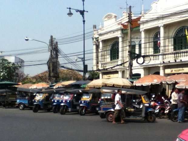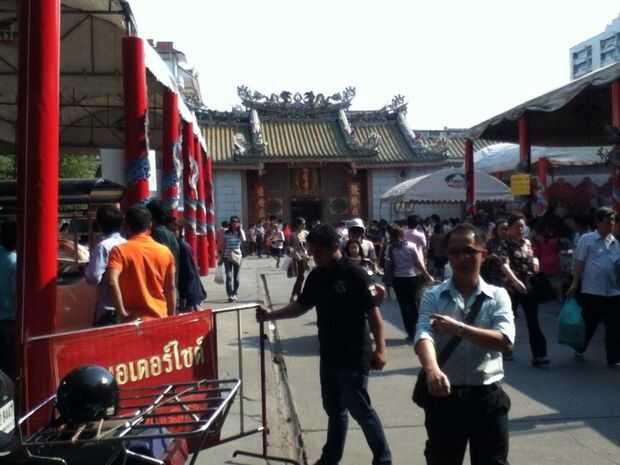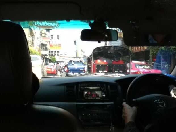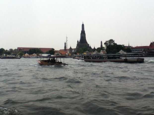 Para evitar el tráfico especialmente en la zona de la ciudad de China, tomamos el Taxi de agua a lo largo del río Chao Phraya, un río de Tailandia, con su llanura aluvial baja, formando el centro del país. Fluye a través de Bangkok y luego en el Golfo de Tailandia. (Fuente: http://en.wikipedia.org/wiki/Chao_Phraya_River). Nos bajamos del taxi acuático en el muelle de Rachawong, el muelle más cercano a la ciudad de China. Entonces tomó el "Tuk Tuk", un auto rickshaw o un cochecito para un viaje de corta distancia a Wat Mangkon Kamalawat o Wat Leng Noei Yi. Luego tomé un taxi al templo de Esmeralda Buddha/Grand Palace.