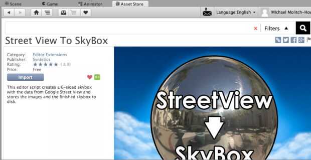 Hay un conjunto de herramientas para unidad MapNav que permite a los usuarios utilizar los datos de Google Earth para sus juegos, pero cuesta $55. Esto es para aquellos creando intensas aplicaciones GPS con una gran cantidad de capacidades. También me topé con este proyecto de código abierto que permite crear todo un mundo con Google StreetView. El cambio de coordenadas callejero como el jugador se mueve a través del juego. No soy lo suficientemente bueno con la unidad para implementar esto, así que me fui con la opción más fácil y más perezosa: una aplicación gratuita de la unidad llamada "Street View a SkyBox". Esta simple aplicación importa las coordenadas de una ubicación específica de StreetView y la convierte en un palco (seis caras cubo que forma el fondo de tu mundo). Por lo tanto, mi barrio no es dinámico, pero que es raro!