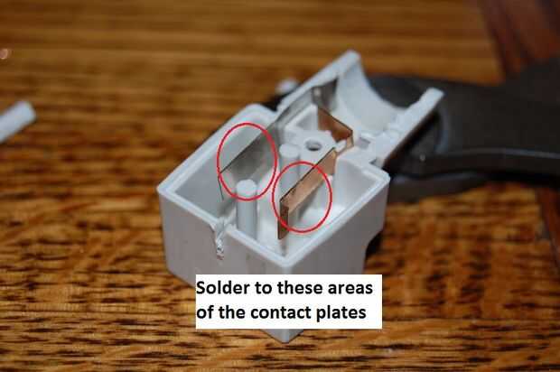Nota : Tenga cuidado al soldar los cables directamente a los contactos. El cable no debe sobresalir en cualquier ángulo extraño.