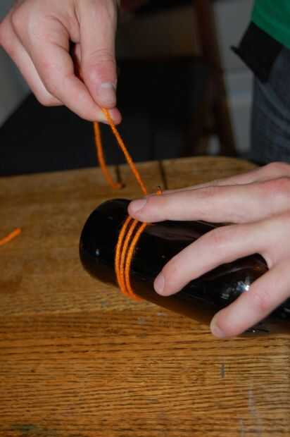 Después de la longitud de la cadena se corta, abrigo alrededor de la botella y atar ambos extremos juntos.