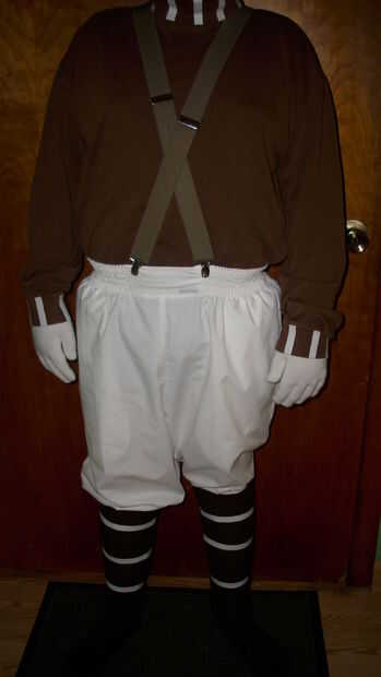 Lo primero que haces es conseguir la camiseta y la cinta quirúrgica. En el cuello del cuello de tortuga, unas líneas verticales para las rayas con cinta. Hacer lo mismo con el final de sus mangas. Tiene su camisa de oompa loompa!