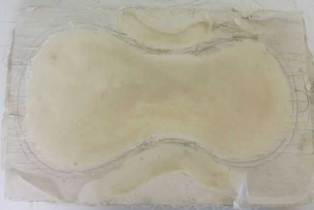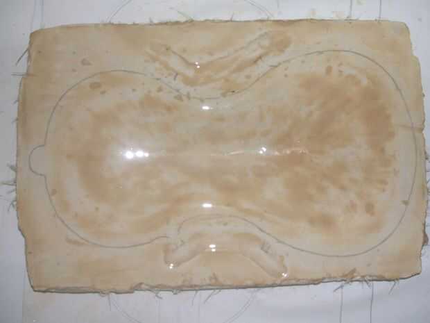 El plan de contorno fue puesto sobre un bloque de yeso (molde 2 º era cera) y un router de mano herald fue usado hacia fuera áspero los contornos, luego cincelado en forma y lija suave