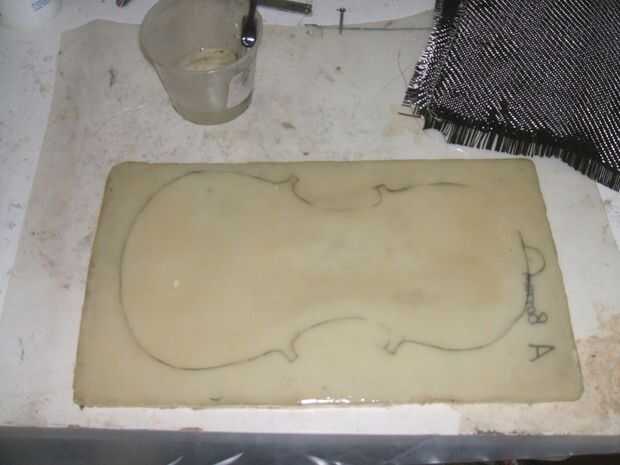 En la siguiente imagen, el molde ha tenía una capa de liberación de molde PVA base y cubierto de 3 x con resina epoxi transparente, no confundir la resina de epoxy con resina de fibra de vidrio, hay diferentes, seleccionar la resina de epoxy más difícil que puedes encontrar (MPA), más difícil cuanto más resuenan el violín serán placas, im usando 105 de West System aquí con endurecedor de allí 108 , fácil de bajar el tono de los jugando con las capas