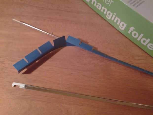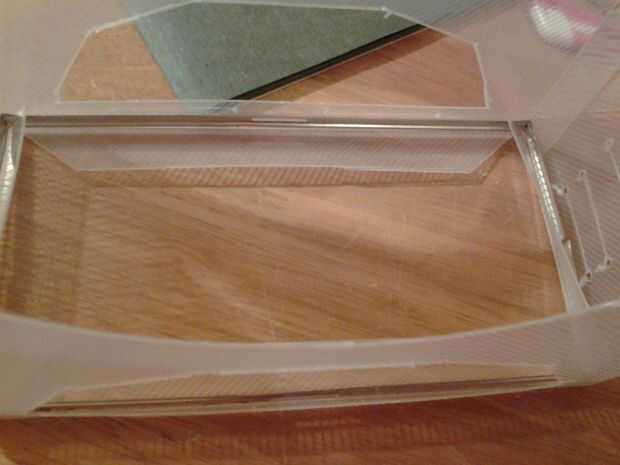 Otra vez usando archivo carpeta tiras del metal, cortarlas a la medida utilizando la plantilla de doblarlas y colocar dentro de la parte inferior de la carcasa. Doble la cubierta y las tiras de metal en lugar de la grapa.