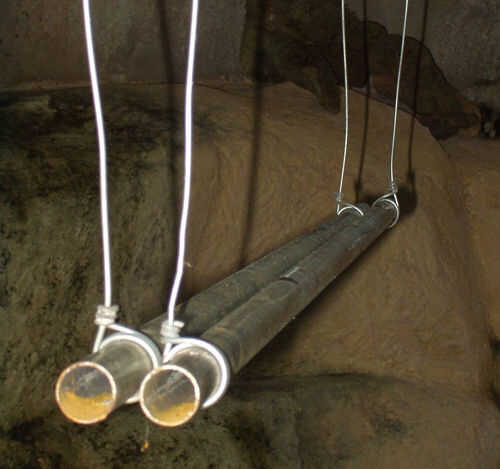 La unidad del espaciamiento y los dos cables en cada formulario del final de un triángulo. Ya que las patas de alambre del triángulo tienen la misma longitud, la base del triángulo y los dos tubos de colgar nivel.