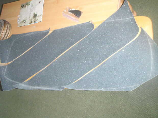 Para recortar los bordes de la cinta, tomar un raspador y un archivo alrededor de los bordes. Terminar con papel de lija y acondicionador más aplicado con un pincel entre las tiras de cinta de agarre.