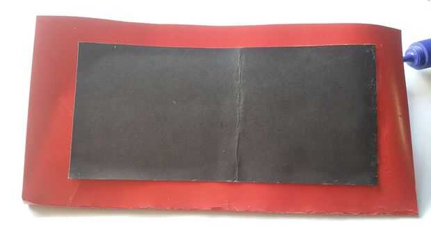 Ahora cortar el papel de la tarjeta de otro color pero debe ser más pequeño que el primero de ellos y pegados el uno pequeño sobre el rojo