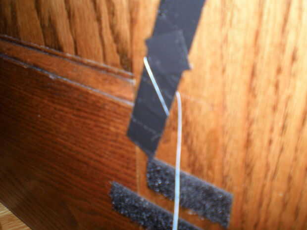 Finalmente... Coloque alarma en una pared junto a su puerta... Fije el hilo de rosca a puerta... Puerta abierta...