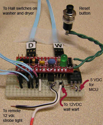 Construcción de este módulo dependerá de lo que Arduino 328 base de MCU que desea utilizar. Elegí la Ardweeny porque era barato y pequeño, y tuve dos por lado. Pienso montar componentes en un tablero de perf de mi caja de chatarra. He utilizado cables de interconexión servo hobby entre módulos. Lo Ardweeny requiere una fuente de 5VDC, otros Arduinos no puede. Ver esquema y foto para más detalles.