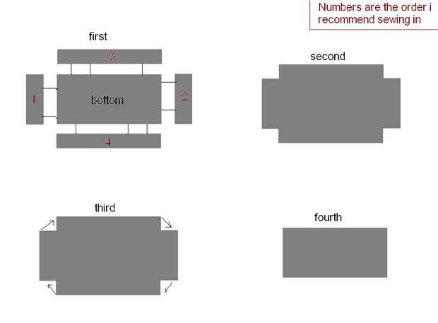 luego tomé uno de los lados largos y cosidas a la pieza inferior