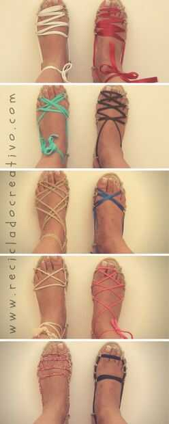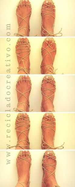 Paso 3: Con cuerdas diferentes y distintas formas de cruzar en los ojales, puede tener más de 20 sandalias